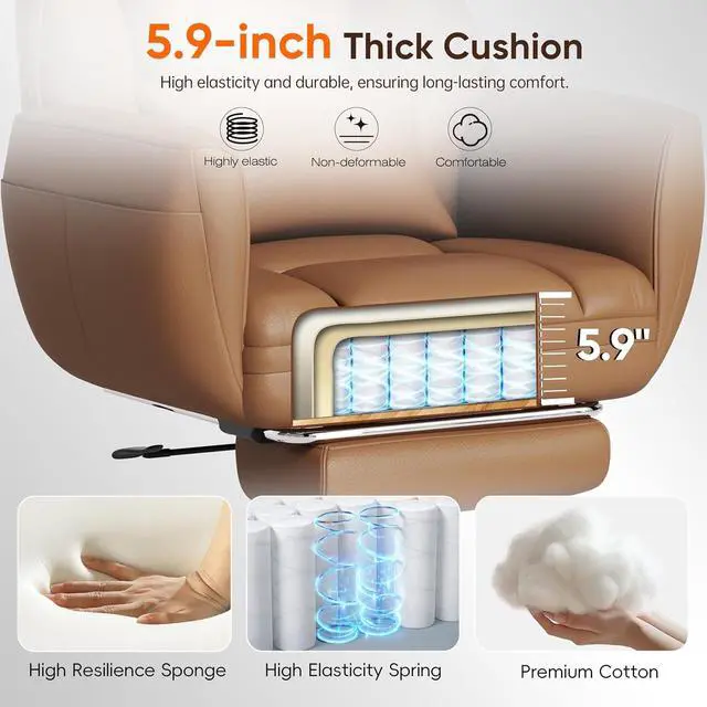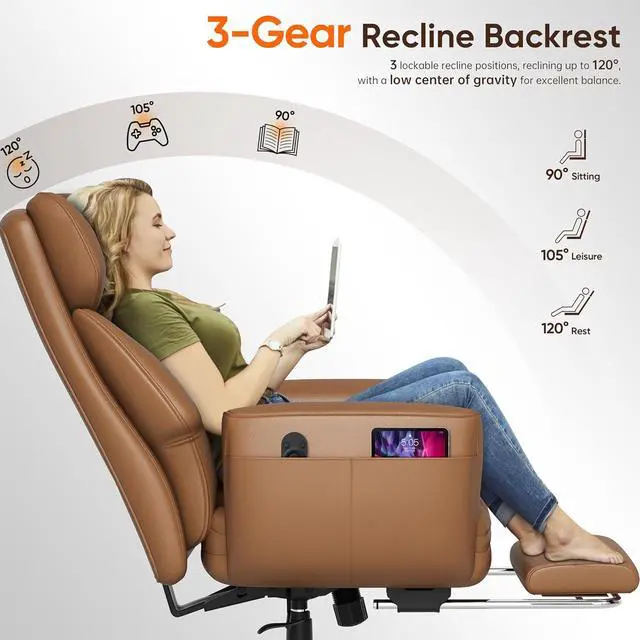 5. 120° Tilt - With 3 tilt positions(90-120°), you can easily adjust the soft leather chair to the perfect angle for your activities. Secure the backrest in your desired position, whether you're lounging, working, or cudding with your cat or pup.