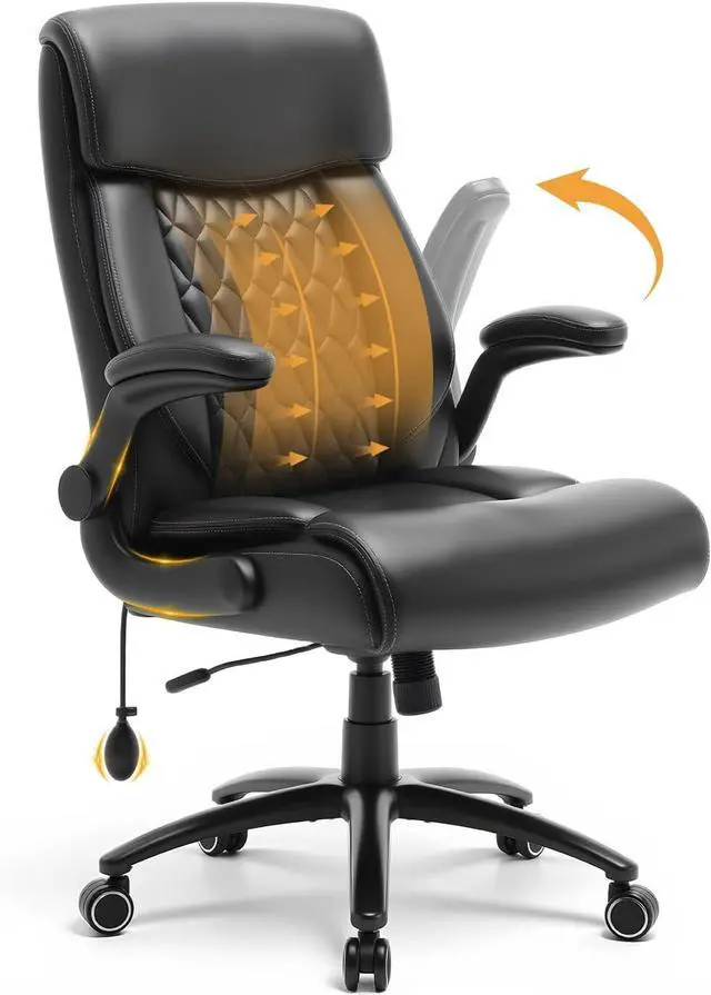 [Flip-Up Arms & Premium Leather Comfort] 90° flip-up armrests let you switch between arm support and armless flexibility, making it easy to tuck the chair under your desk to save space. Wrapped in high-quality leather thats breathable, wear-resistant, and easy to cleanperfect for daily use at home or in the office.