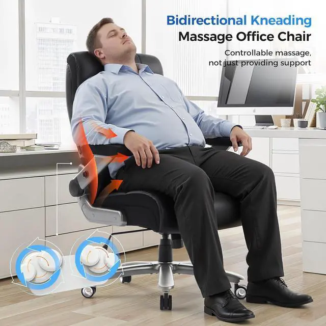 600LBS Big and Tall Massage Office Chair, Extra Wide Seat - 3D Kneading Massage & Heat Office Chair with Heavy Duty Metal Base, 3D Flip Arms, Leather Ergonomic with Thick Spring Cushion