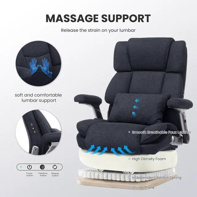 Massage Function: This chair features a targeted lumbar massage function, deeply kneads muscles to ease fatiguekeeping you comfortable and refreshed during work or relaxation