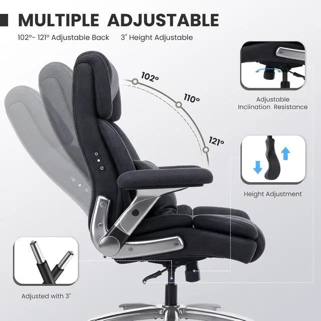 750lbs Heavy Duty Desk Chair with 3D Kneading Massage, Big and Tall Office Chairs with Ergonomic Support, 4D Armrests, 5 Quiet Dual Rubber Wheel, Thick Spring Cushion(Black-Fabric)