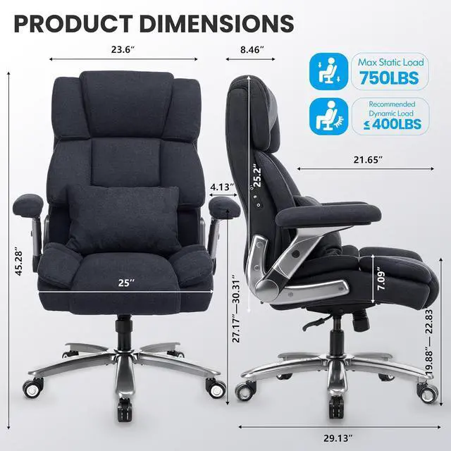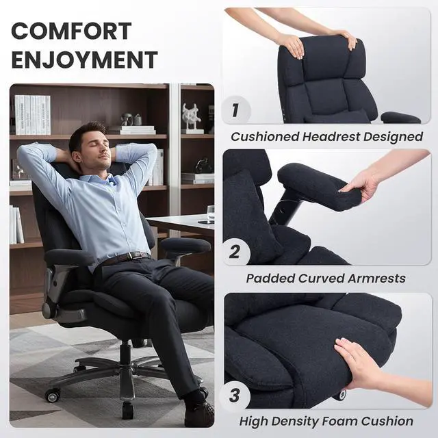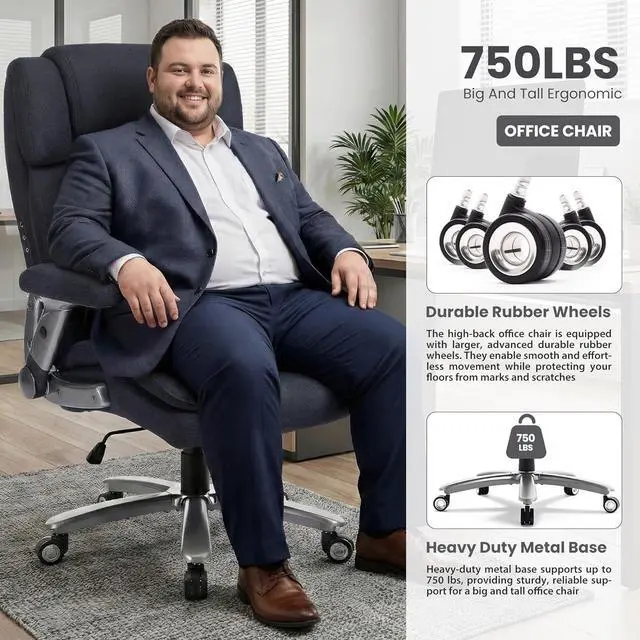 Heavy-Duty & Stable: Built with a solid base and smooth-rolling casters, this spacious executive leather office chair supports up to750 lbs, ensuring quiet mobility and reliable comfort for worry-free workdays