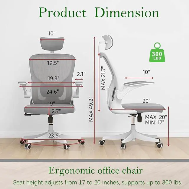 Ergonomic Office Chair, High-Back Mesh Computer Desk Chair with Adjustable Height, Lumbar Support, Flip-Up Armrests,headrest,and Swivel Rolling Design for Home and Office Use