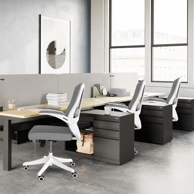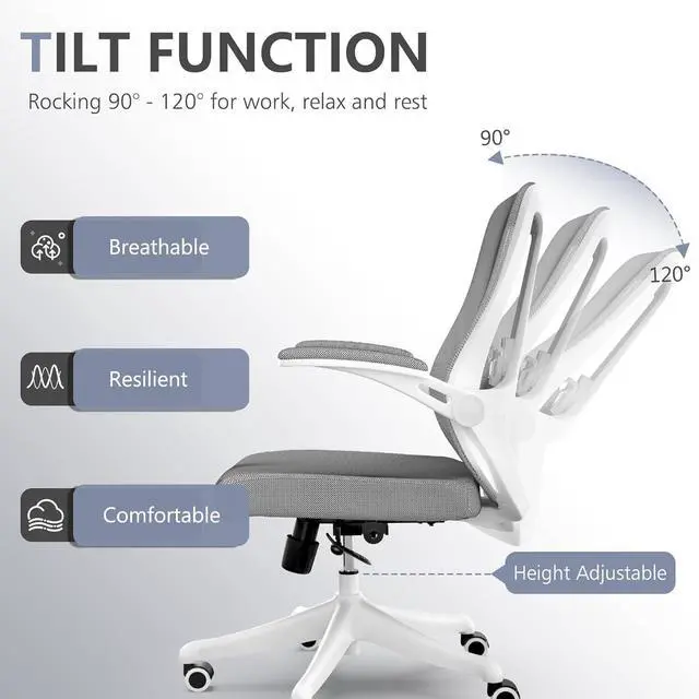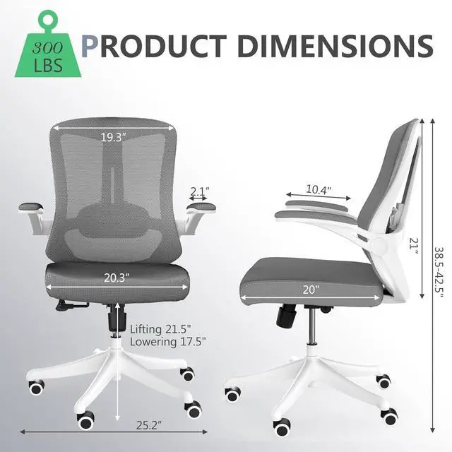 300 LBS Ergonomic Office Computer Mesh Chair - Adjustable Height Rolling Desk Chair with Flip-Up Armrests & High Back Support - Comfortable Swivel Task Chair for Home Office
