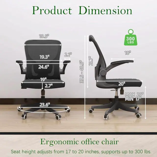 Ergonomic Office Chair, High-Back Mesh Computer Desk Chair with Adjustable Height, Lumbar Support, Flip-Up Armrests,headrest,and Swivel Rolling Design for Home and Office Use