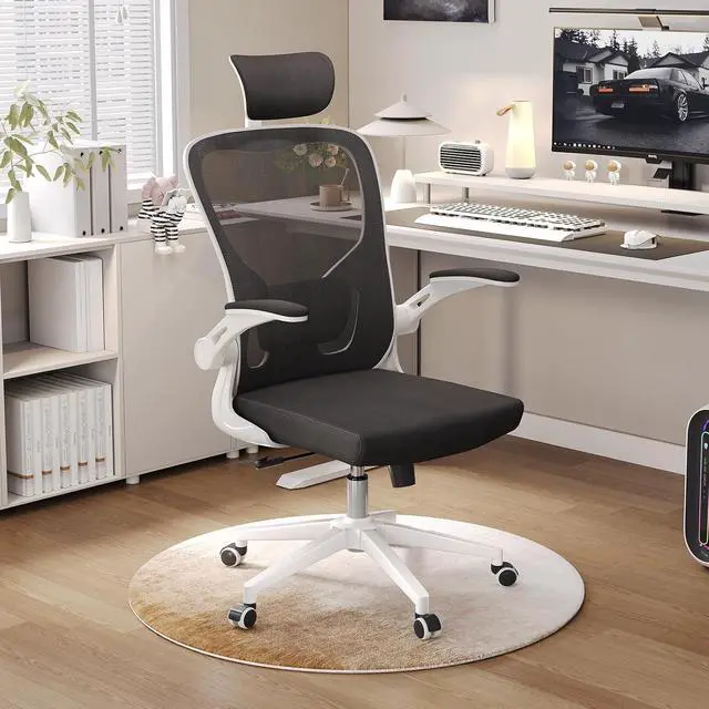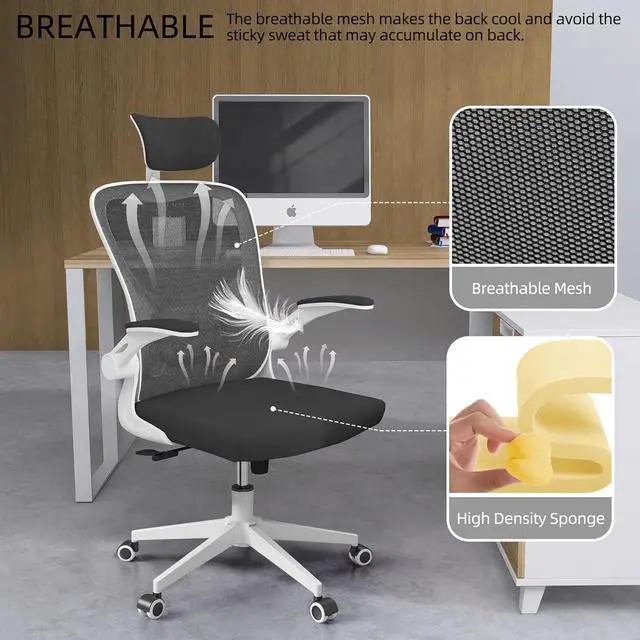 Ergonomic Office Chair, High-Back Mesh Computer Desk Chair with Adjustable Height, Lumbar Support, Flip-Up Armrests,headrest,and Swivel Rolling Design for Home and Office Use