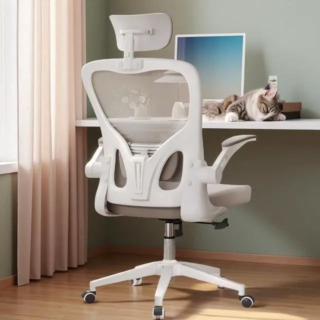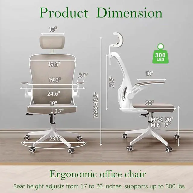 Ergonomic Office Chair, High-Back Mesh Computer Desk Chair with Adjustable Height, Lumbar Support, Flip-Up Armrests,headrest,and Swivel Rolling Design for Home and Office Use