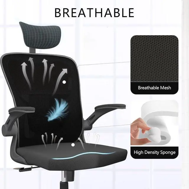 Ergonomic Office Chair, High-Back Mesh Computer Desk Chair with Adjustable Height, Lumbar Support, Flip-Up Armrests,headrest,and Swivel Rolling Design for Home and Office Use