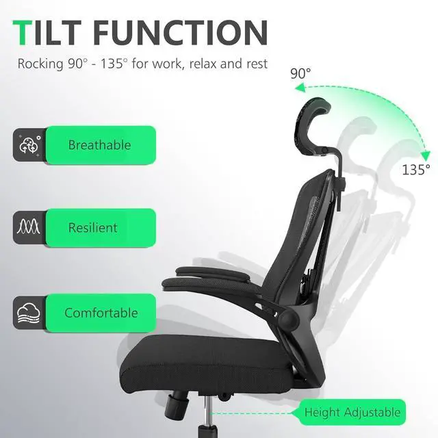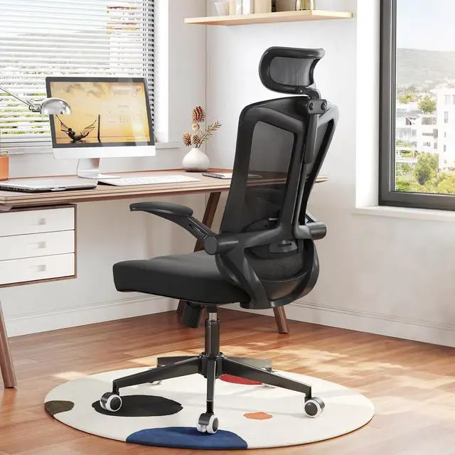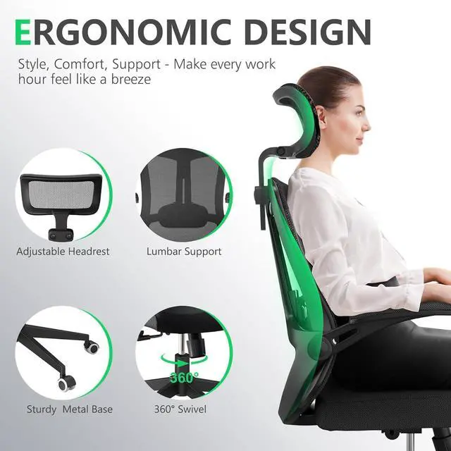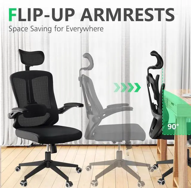 300 LBS Ergonomic Office Computer Mesh Chair - Adjustable Height Rolling Desk Chair with Flip-Up Armrests & High Back Support - Comfortable Swivel Task Chair for Home Office