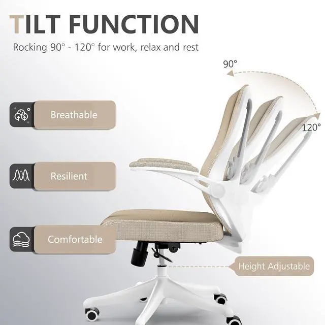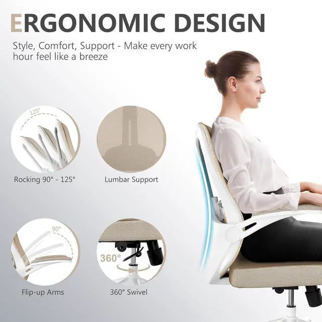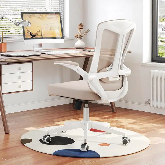 Ergonomic Office Chair with Adjustable Lumbar Support & Flip-Up Armrests - High Back Computer Desk Chair with Thickened Seat Cushion, Rolling Wheels for Home/Office Study Work (08khaki)
