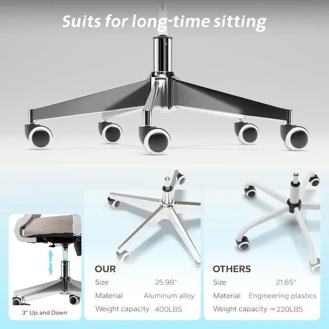 Exceptional Breathability This office chair features an all-over mesh design, offering skin-friendly ventilation and a cloud-like sitting experience. It ensures efficient heat dissipation, making long hours of work comfortable and effortless. Even in summer, it prevents sweat buildup, keeping you cool and dry during extended use.
