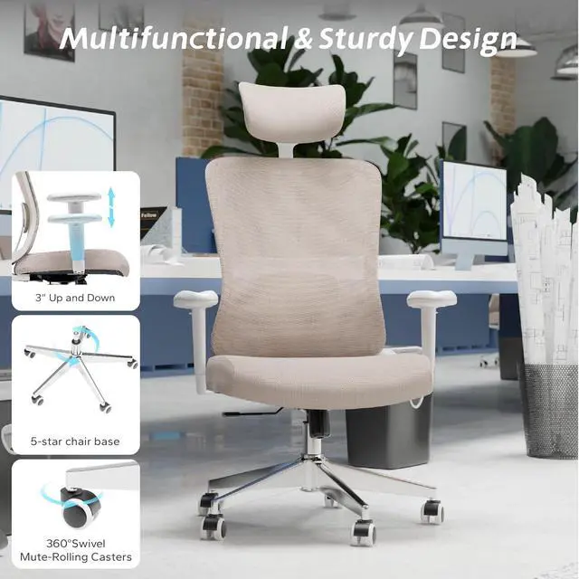 Ergonomic Office Chair with Adjustable Lumbar Support & Flip-Up Armrests - High Back Computer Desk Chair with Thickened Seat Cushion, Rolling Wheels for Home/Office Study Work (05khaki)