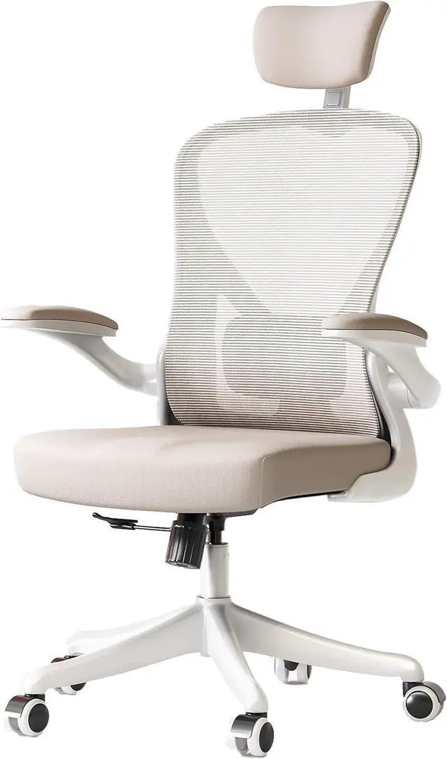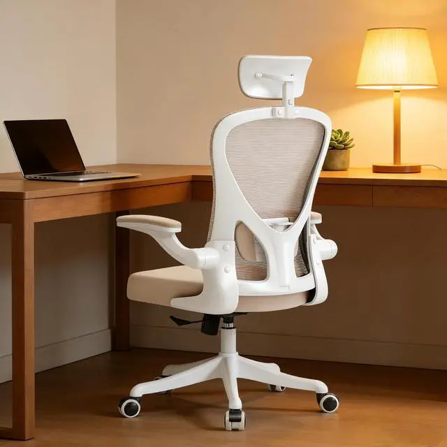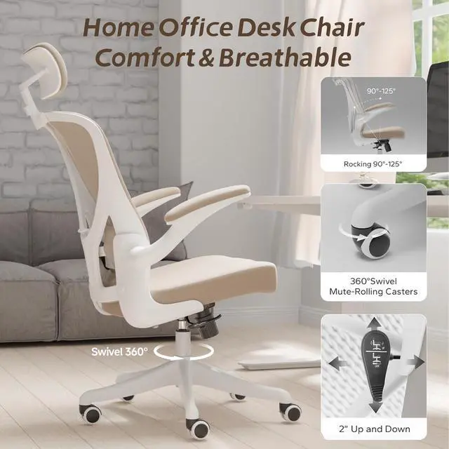 Ergonomic Office Chair with Adjustable Lumbar Support & Flip-Up Armrests - High Back Computer Desk Chair with Thickened Seat Cushion, Rolling Wheels for Home/Office Study Work 02h-khaki
