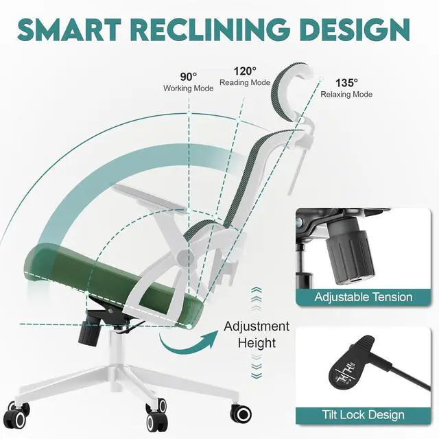 Exceptional Breathability This office chair features an all-over mesh design, offering skin-friendly ventilation and a cloud-like sitting experience. It ensures efficient heat dissipation, making long hours of work comfortable and effortless. Even in summer, it prevents sweat buildup, keeping you cool and dry during extended use.