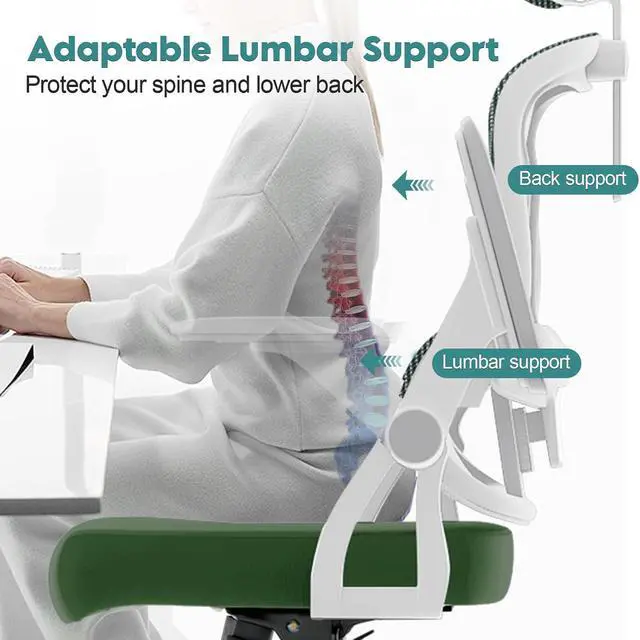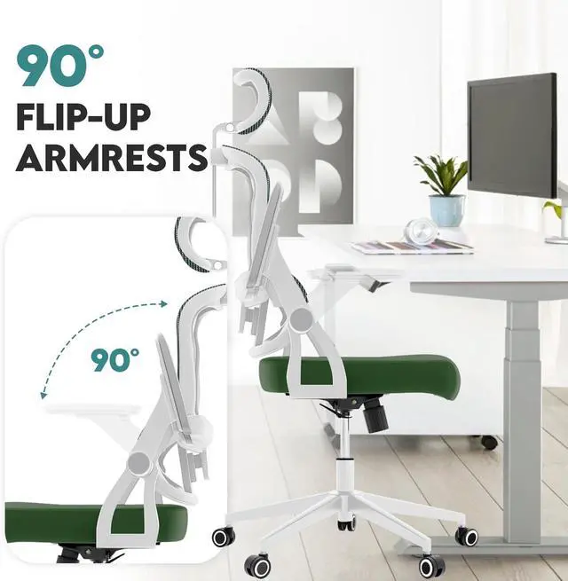350 LBS Ergonomic Office Computer Mesh Chair - Adjustable Height Rolling Desk Chair with Flip-Up Armrests & High Back Support - Comfortable Swivel Task Chair for Home Office (01GREEN)