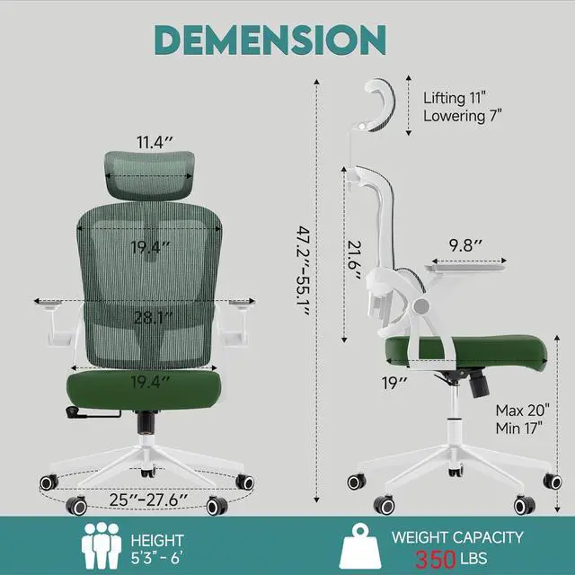 Durable and StableThis product is built to last, with every batch of materials and components rigorously tested for tear and pressure resistance. The ergonomic chair's seat cushion is crafted with high-density, high-resilience foam and breathable mesh fabric, ensuring both breathability and soft comfort while maintaining its shape and integrity even after prolonged use. The recommended maximum weight capacity is 350 lbs.