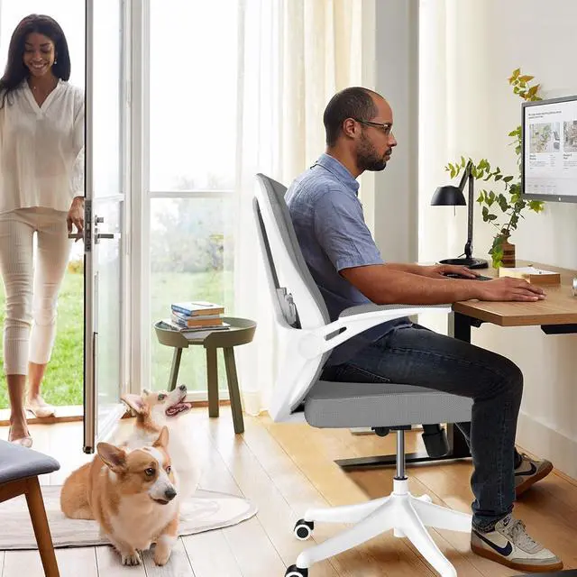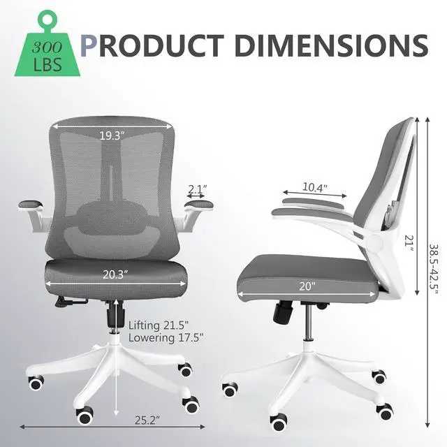 350 LBS Ergonomic Office Computer Mesh Chair - Adjustable Height Rolling Desk Chair with Flip-Up Armrests & High Back Support - Comfortable Swivel Task Chair for Home Office (02GREY)