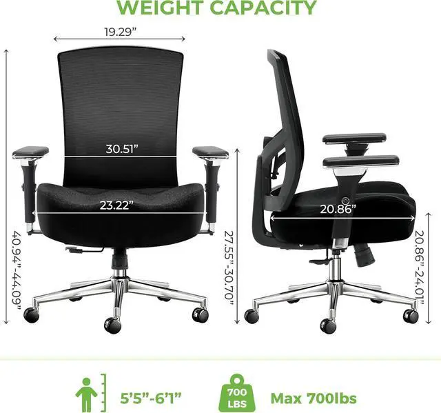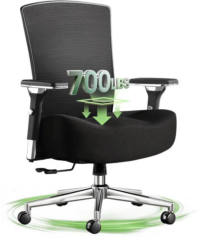 Big and Tall Office Chair 700lbs with Ergonomic W Wide Thick Seat Cushion, Oversized Mesh Desk Chair with Adjustable Lumbar Support, Computer Chair with Upgraded 4D Armrests