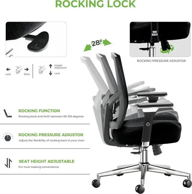 [ ] This ergonomic seat features an S-shaped backrest with effectively adjustable lumbar support, the support panels can be manually adjusted up and down, forward and backward, to switch to a comfortable sitting position at any time. Flexible 4D padded armrests provide comfortable support for arms and shoulders. The rocking system allows you to rock back and forth at any angle up to 135°. The lower tilt tension knob controls the tension of the backrest.