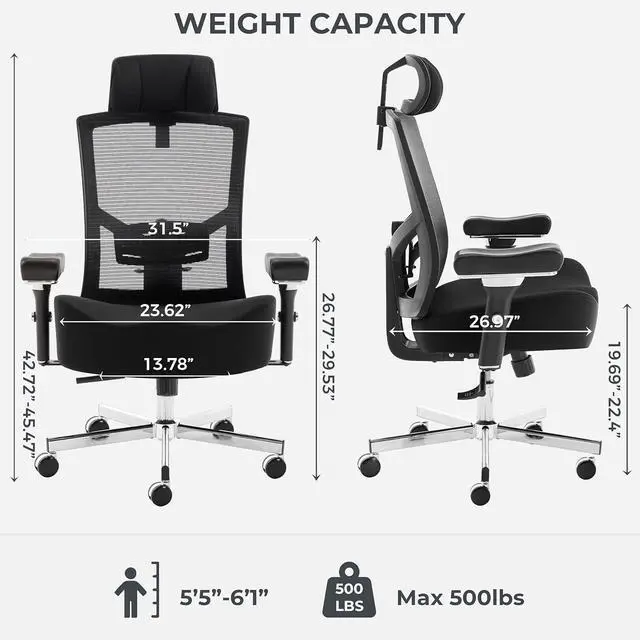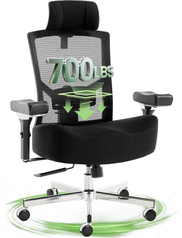 Big and Tall Office Chair 700lbs with Ergonomic W Wide Thick Seat Cushion, Oversized Mesh Desk Chair with Headrest Adjustable Lumbar for Heavy People, Computer Chair with 4D Armrests