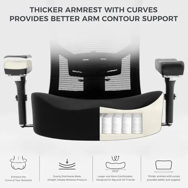 [ - ] Larger and more comfortable Designed for big and tall friends, it can hold up to 700 pounds. Featuring an oversized W-shaped seat cushion (5.1 Inches Thicker), it helps lift and contour the buttocks, evenly distributes body weight, deeply releases pressure. If you're in a heartbeat, click add to cart now and you will have the perfect sturdy chair designed just for you!
