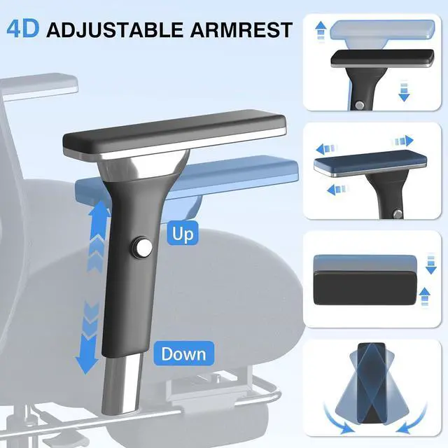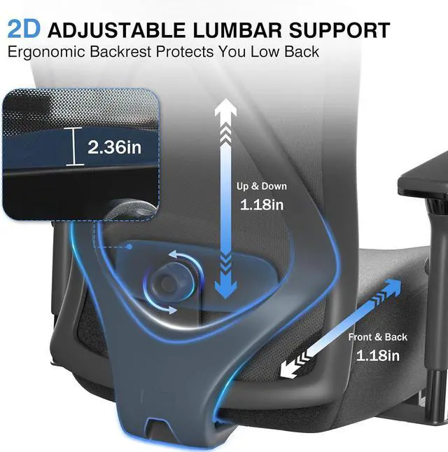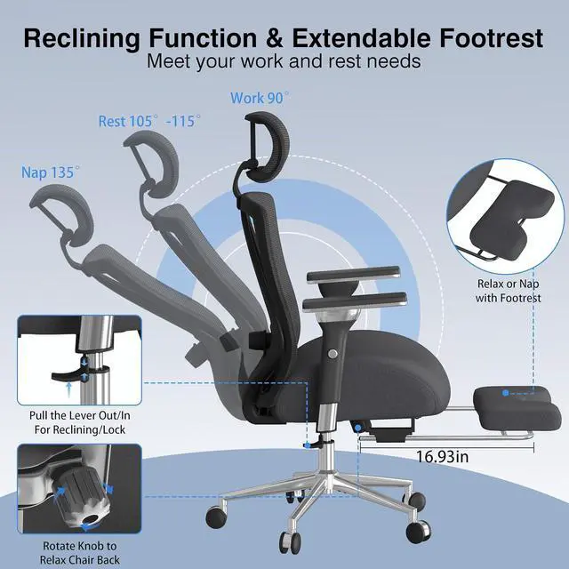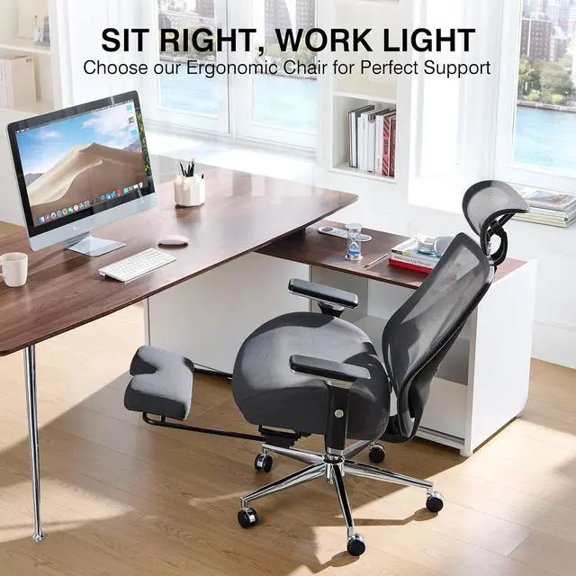 Office Chair with Footrest, Ergonomic Mesh Office Chair with Thick Wide Cushion, 4D Armrest, Adjustable Lumbar Support for Headrest, High Back Computer Desk Chair for Home, Grey