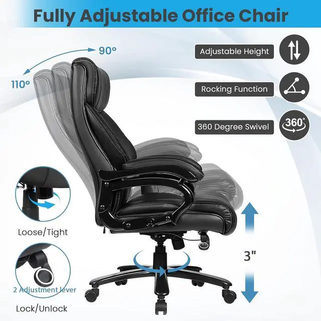 HIGH-GRADE LEATHER & STURDY FRAMEPOWERSTONE executive chair is carefully-selected PU material that is waterproof, easy to wipe clean, and filled with high-density sponge. Reinforced steel frame structure, sturdy chassis, BIMFA certified gas lift, which strengthens the load-bearing capacity and more stable. The chair can withstand up to 500 lbs and it is very easy to assemble and set up.