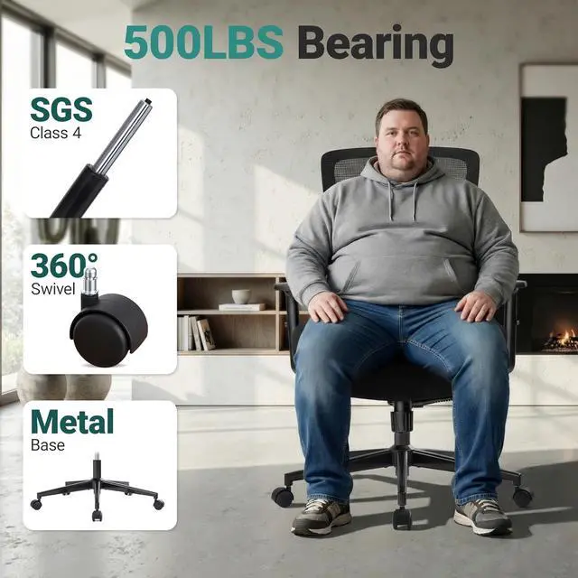 BIG & TALL HEAVY DUTY SUPPORT BUILT FOR HOME OFFICE Designed for bigger bodies and long workdays, this big and tall home office desk chair supports up to 500 lb capacity and features a reinforced metal base, Class 4 gas lift, and stable five-star foundation. Built for home office, study room, and workstation use, it delivers dependable strength and balance, making it an ideal office chair for heavy people and tall users