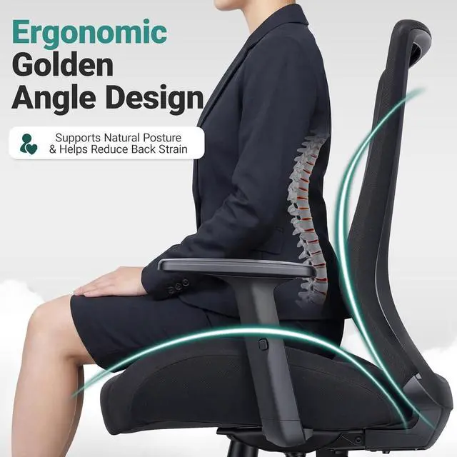 HIGH BACK ERGONOMIC DESIGN & ADJUSTABLE ARMRESTS Designed to support your full upper body, the high-back ergonomic mesh chair follows the natural curve of your spine to provide consistent lumbar and shoulder support. The breathable mesh improves airflow, while the height-adjustable armrests allow you to fine-tune arm support for different desk heights, body sizes, and working positionsideal for extended home office use