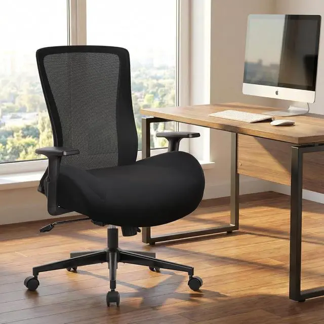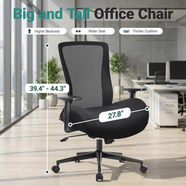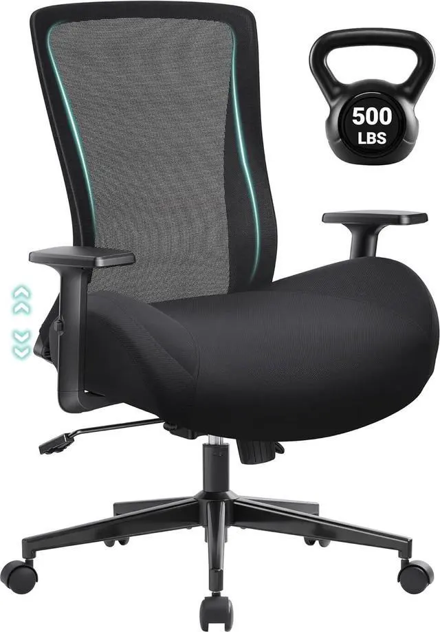Big and Tall Home Office Desk Chair 500lb Capacity for Heavy People, Ergonomic Wide Mesh Desk Chair with Stepless Recline & Lock, 5.5" Thick Cushion, High Back, Adjustable Height & Armrests