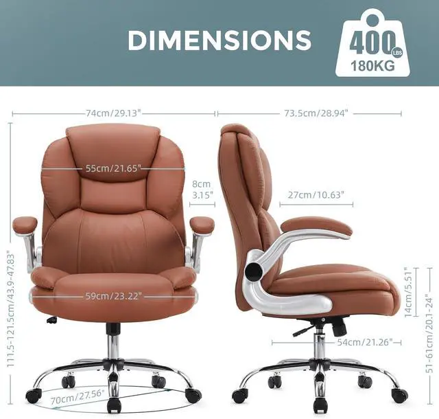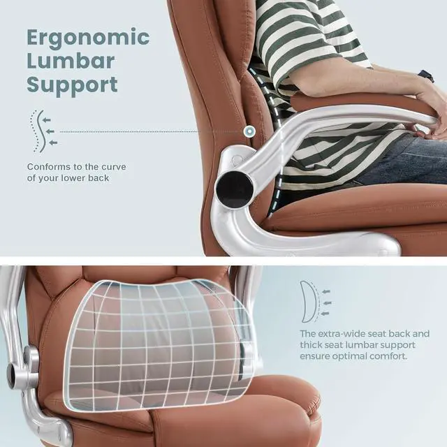 IWMH Executive Office Chair, Ergonomic Big and Tall Computer Desk Chair, High Back PU Leather Chair with Padded Flip-up Armrest, Lumbar Support Swivel Rolling Chairs Brown