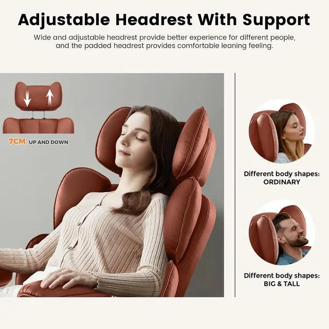 Ergonomic Office Chair: This desk chair is specially designed with a focus on ergonomics. High back and lumbar support can perfectly fit the back and neck. The backrest is filled with double-layer elastic sponge, gently wrapping around the body. Adjustable headrest helps alleviate neck pressure, effectively protecting your cervical spine, provide a more comfortable experience, promoting a healthy sitting posture