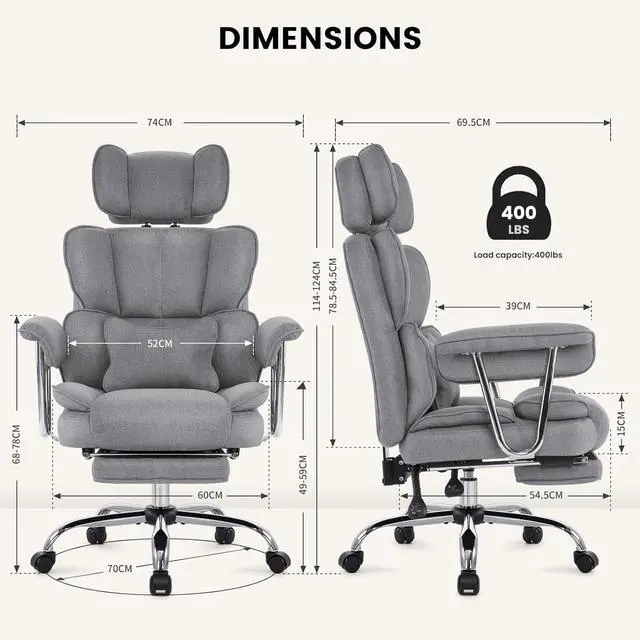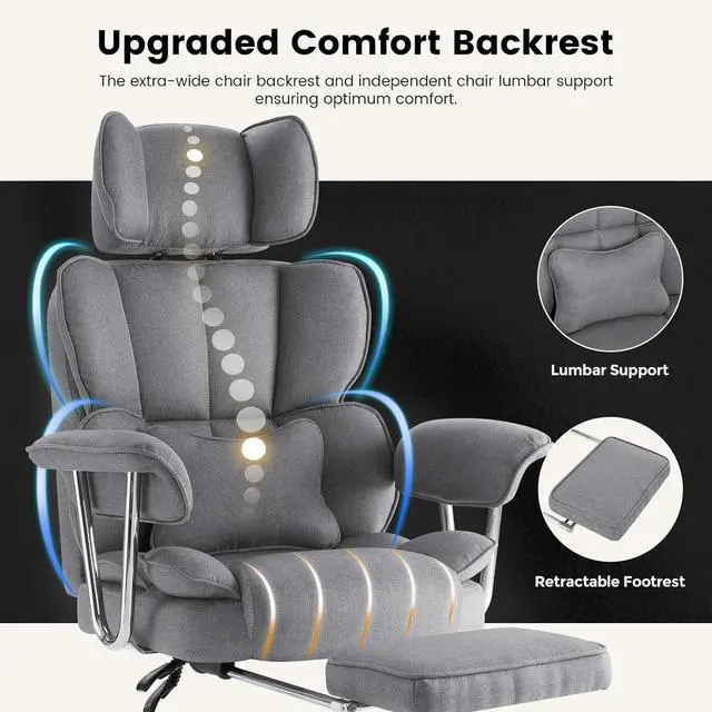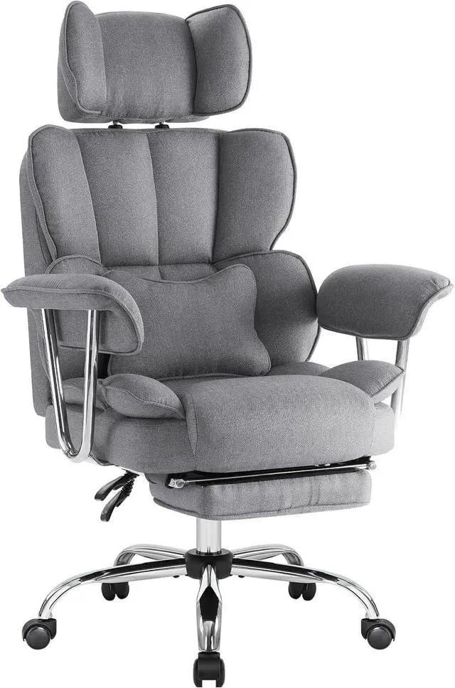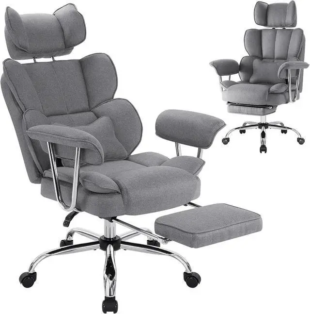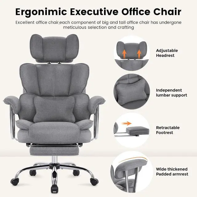 Big and Tall Executive Office Chair 400LBS, Heavy Duty Desk Chair with Footrest, Ergonomic Computer Chairs, Extra Wide Seat, Adjustable Headrest, Armrests,Lumbar Support (Gray)
