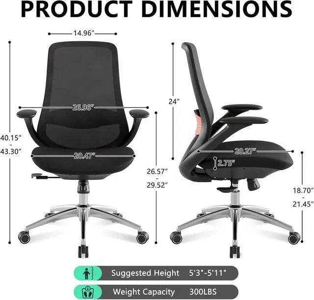 CERTIFIED SAFETY & DURABILITYBuilt to the highest standards with BIFMA-certified components for guaranteed reliability. Our leak-proof gas cylinder undergoes rigorous testing to prevent accidental sinking, while the reinforced aluminum base with smooth-rolling PU wheels provides exceptional stability on all floor types. Supporting up to 300lbs, this chair delivers professional-grade security and peace of mind for your workspace
