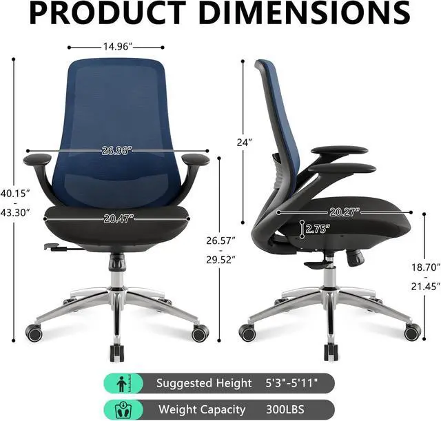 CERTIFIED SAFETY & DURABILITYBuilt to the highest standards with BIFMA-certified components for guaranteed reliability. Our leak-proof gas cylinder undergoes rigorous testing to prevent accidental sinking, while the reinforced aluminum base with smooth-rolling PU wheels provides exceptional stability on all floor types. Supporting up to 300lbs, this chair delivers professional-grade security and peace of mind for your workspace