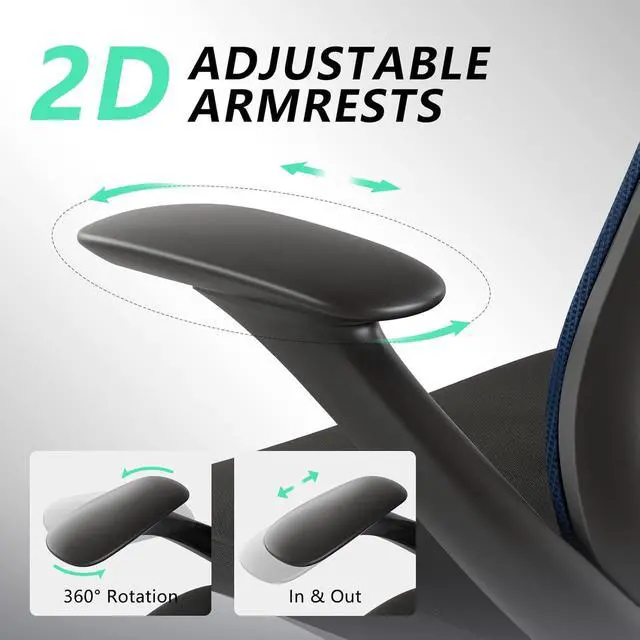 2D ADJUSTABLE ARMRESTSAchieve optimal comfort with our 2D adjustable armrests that smoothly slide forward/backward and rotate 360°. This innovative dual-mode adjustment allows perfect alignment with any desk height and working posture. By maintaining natural arm positioning, the armrests effectively reduce shoulder pressure and wrist fatigue, enabling enhanced focus and productivity during extended computer work, office tasks, or gaming sessions