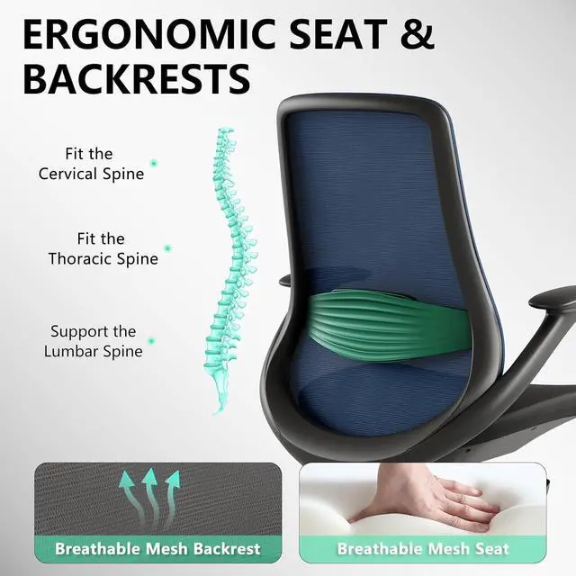 PREMIUM COMFORT SEATExperience exceptional comfort with our generously sized seat cushion (20.5"W x 20.27" D) featuring high-density foam that evenly distributes weight and reduces hip pressure by 20%. The breathable mesh material promotes air circulation while providing firm support, creating an ideal sitting experience for extended work sessions. Combined with the ergonomic backrest, this chair delivers all-day comfort whether you're working, gaming, or relaxing in your home or office