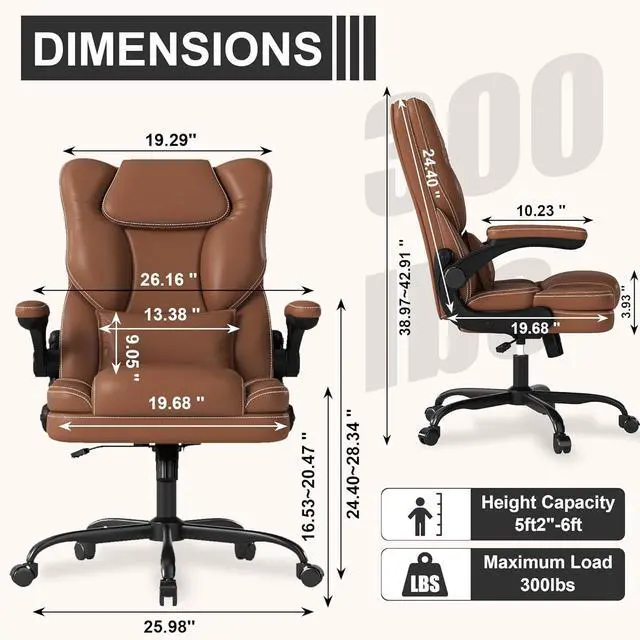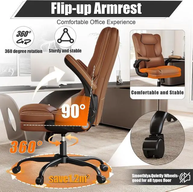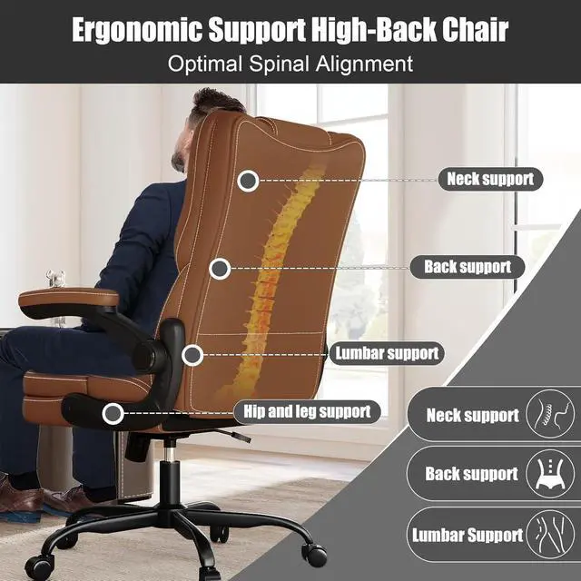 Ergonomic Office Chair with Flip-up Armrests 300lbs,Middle- Tall Computer Office Desk Chair with Lumbar Support,Executive PU Leather Chair with Rocking Function Adjustable Height for Home Office