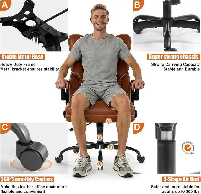 Leather Office ChairThis executive office chair is crafted from high-quality PU leather, making it both waterproof and stain-resistant. Filled with high-density sponge, it provides a comfortable office chair experience that feels natural and supportive, perfect for long hours of use.
