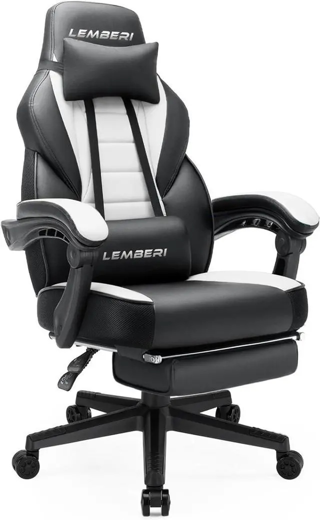 LEMBERI Gaming Chairs with Footrest,Ergonomic Video Game Chairs for Adults,Big and Tall Gaming Chair 400lb Weight Capacity, Racing Style Gaming Computer Gamer Chair with Headrest and Lumbar Support