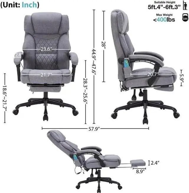Massage Office Chair with Heat,Reclining Office Chair with Foot Rest,6 Points Vibration Home Desk Chairs for Heavy People 400lbs,Ergonomic Managerial Executive Chair (Grey)