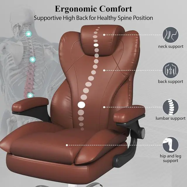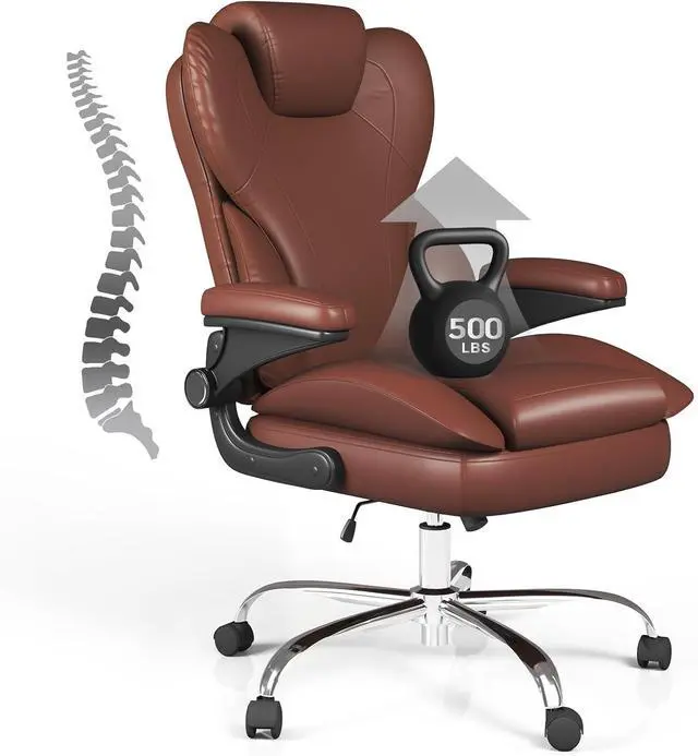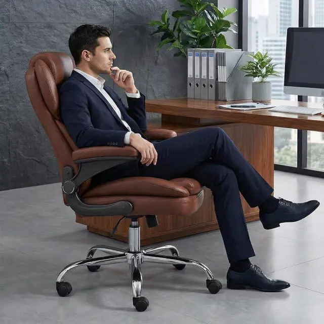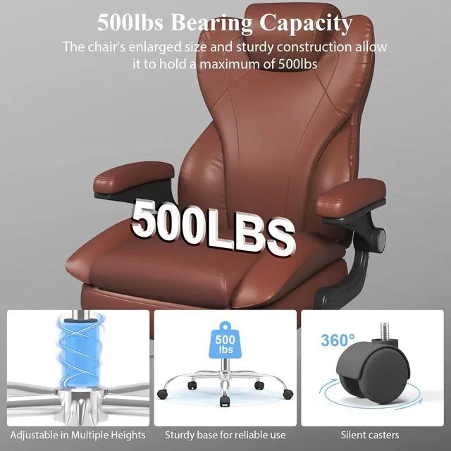 Durable and Stable ConstructionThis leather office chair offers excellent stability and long-lasting performance, with silent PU casters to protect floors. Equipped with a solid five-star metal base certified by BIFMA, the SGS-certified level 3 pneumatic lift has been rigorously tested to support up to 500 pounds. Its memory foam cushion frame is made of FSC-certified wood. This ensures that the frame and components will last through daily use. Making it ideal for everyday use in your home or office environment