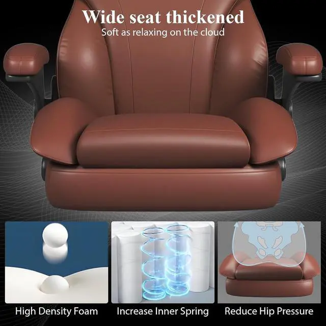 Perfect Ergonomic DesignThe backrest design of this big and tall office chair fully considers ergonomics, perfectly fits the natural curve of your spine, fits the curve of your neck, shoulders and back, and effectively relieves the pressure on your lower back and waist. The high backrest, widened sides, and high-density sponge design bring a comfortable surround experience like a sofa