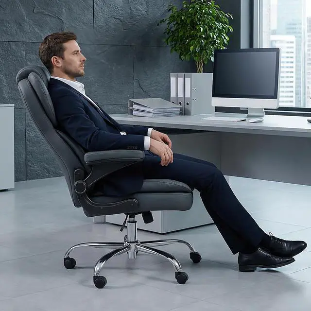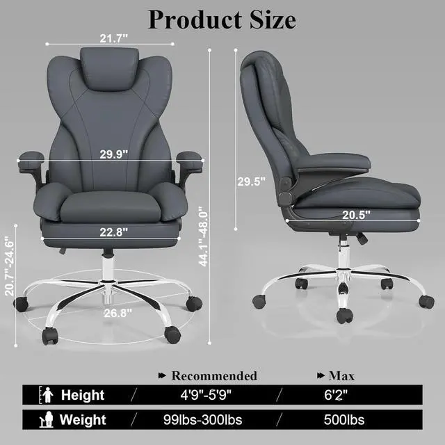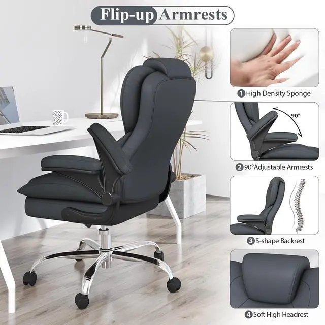 Versatile Adjustments for Multiple ScenariosThis executive office chair comes with a seat height adjustment lever that can be adjusted from 20.66 inches to 24.61 inches to meet your personalized height needs. The 90° flip-up armrests maintain natural elbow support or can be designed without armrests to save space under the desk. The 360° swivel and smooth-gliding casters make it easy to move in any environment
