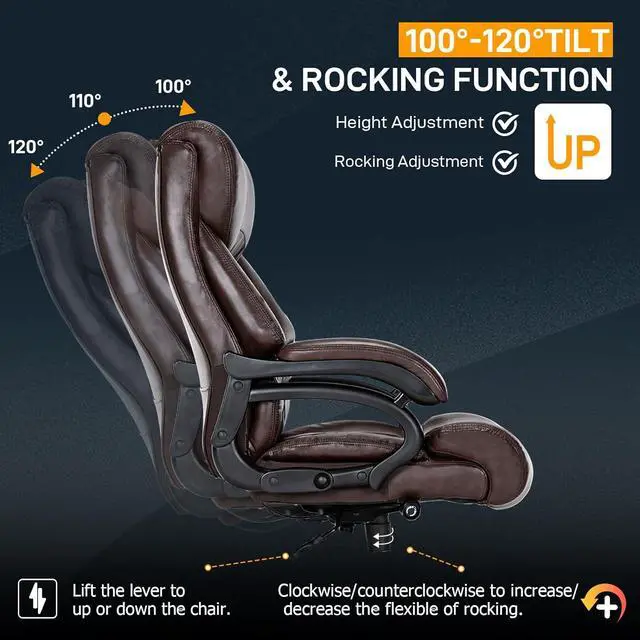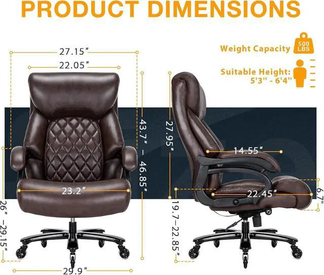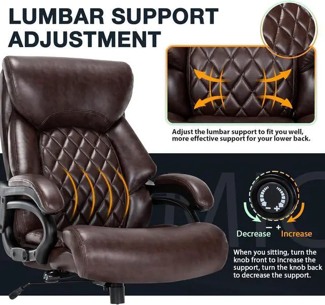 Big and Tall Office Chair for Heavy People, 500LBS High Back Extra Wide Heavy Duty Executive Office Chair Comfortable for Home Office, Large Computer Desk Chair with Adjustable Lumbar Support Brown