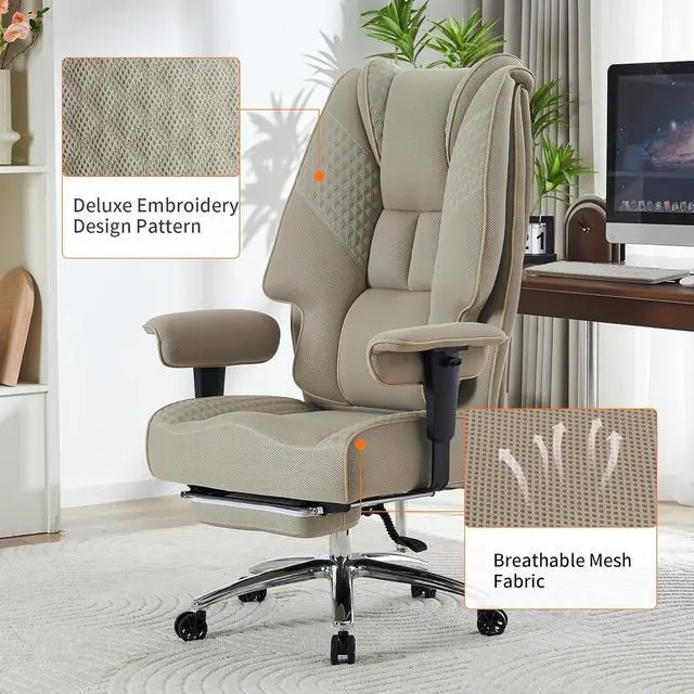 Big and Tall Office Chair 400lbs Wide Seat, Leather High Back Executive Office Chair with Foot Rest, Ergonomic Chairs Lumbar Support for Lower Back Pain Relief (Mesh Dark Beige)