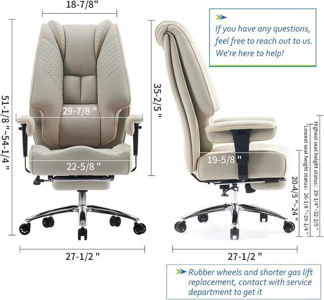 Quality Assurance: The heavy duty office chair is built with top-grade materials, including an SGS-certified class 3 gas cylinder and a BIFIMA-approved metal base. The plus size office chair undergoes rigorous durability tests to ensure frame and component longevity for daily use. The cushion frame made of FSC-Certified wood
