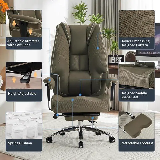 Quality Assurance: The heavy duty office chair is built with top-grade materials, including an SGS-certified class 3 gas cylinder and a BIFIMA-approved metal base. The plus size office chair undergoes rigorous durability tests to ensure frame and component longevity for daily use. The cushion frame made of FSC-Certified wood