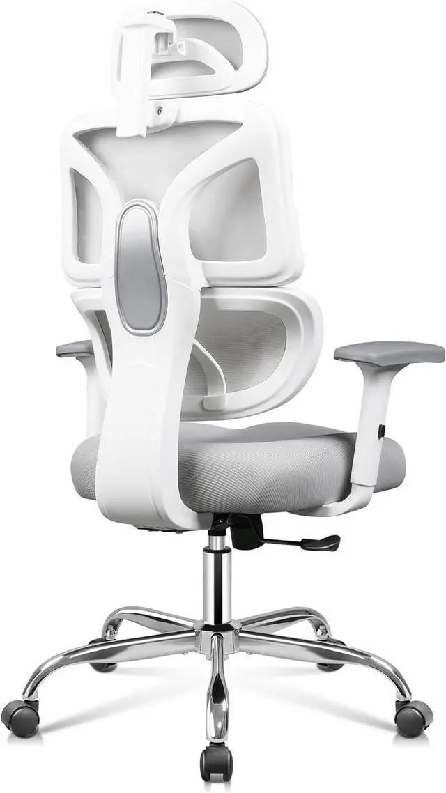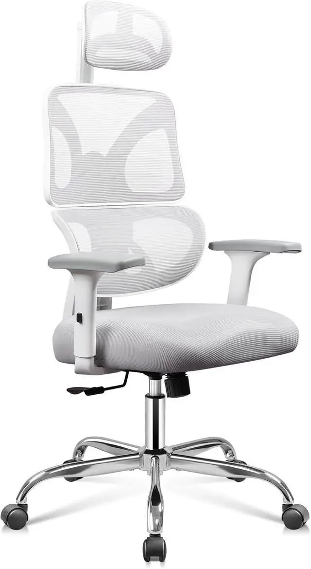 DEVAISE Office Chair Big and Tall Reclining Ergonomic Desk Chair for Long Hours, Comfy Breathable Mesh, Adjustable Armrests with Lumbar Support, White