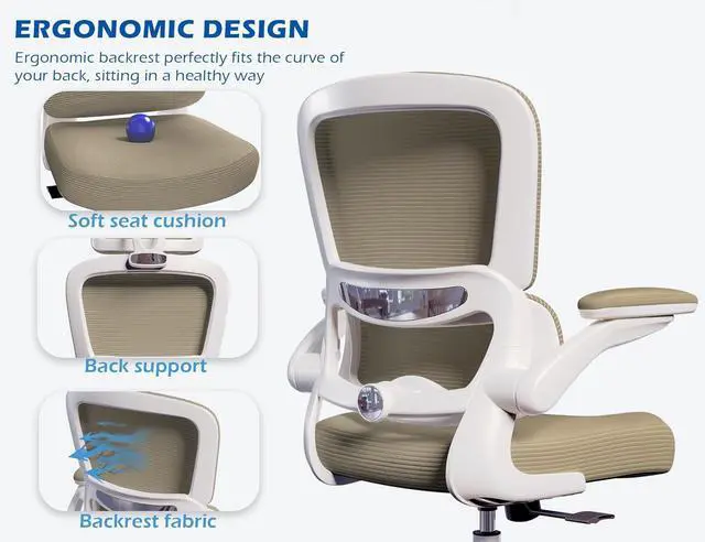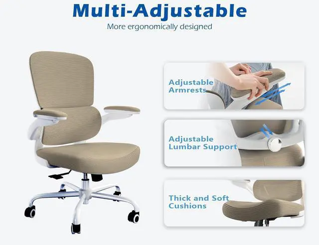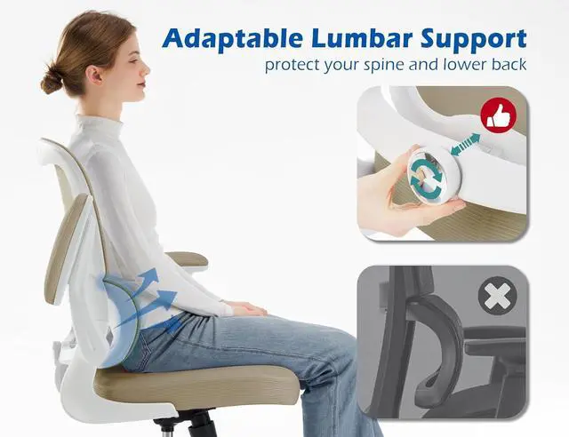 ERGONOMIC SUPPORT: TRALT ergonomic office chair for back pain relief is a desk chair comfy enough for long hours, featuring adjustable lumbar support to promote natural posture. A wider seat (20" W x 17.3" D x 18.5"-21.3" H) helps distribute weight evenly, suitable for people of about 5'5" to 6'2". Flip-up armrests make it a comfy chair for small spaces